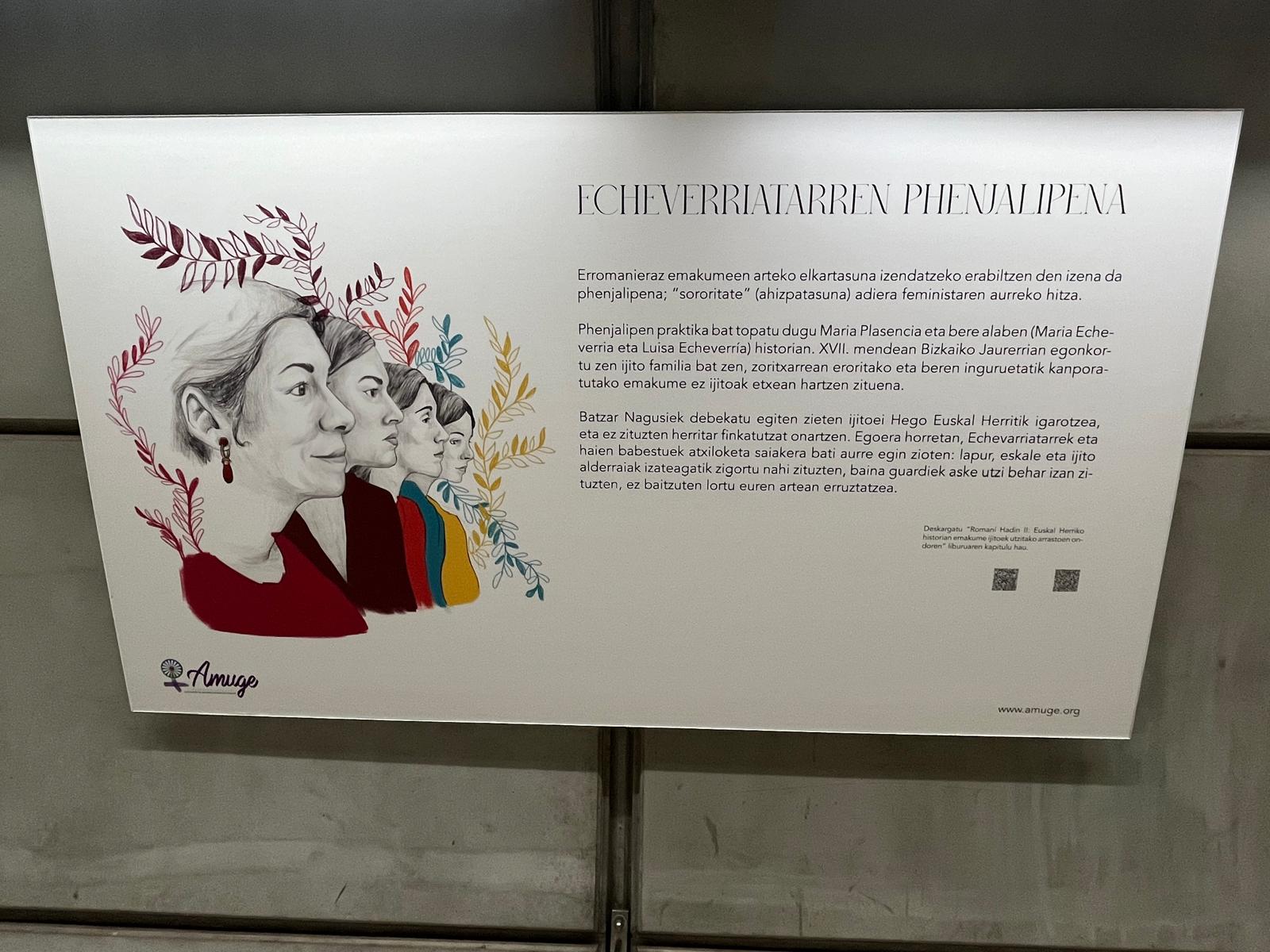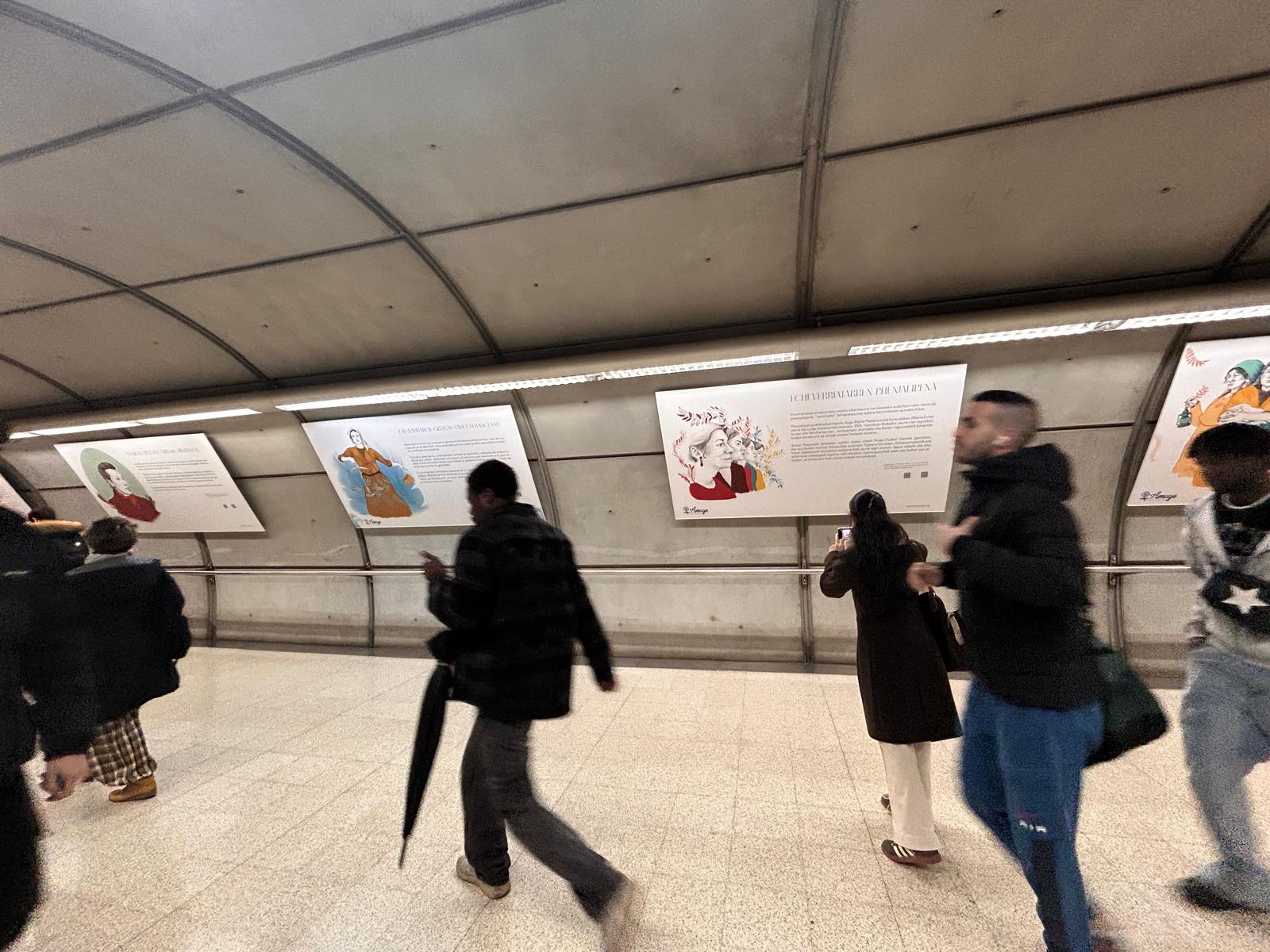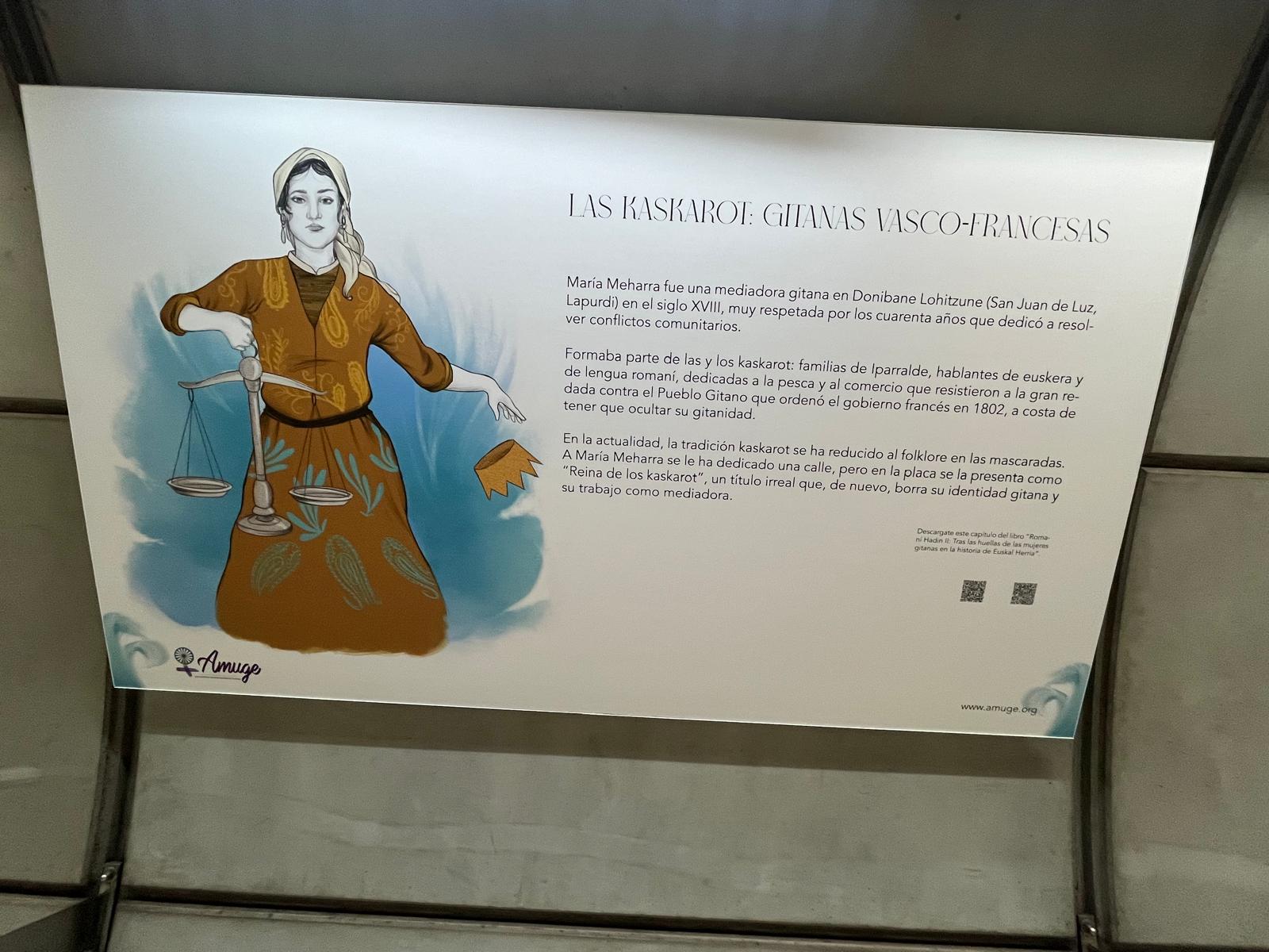 La estación de Abando de Metro Bilbao acoge a partir de hoy y durante todo el mes de diciembre la exposición “Romaní Hadin II. Tras las huellas de las mujeres gitanas en la historia de Euskal Herria”. Este proyecto de la asociación de mujeres gitanas de Euskadi, AMUGE Elkartea, incluye también una investigación académica y un libro ilustrado en Lectura Fácil que se pueden descargar de forma gratuita mediante los códigos QR que incluyen los paneles de la exposición.